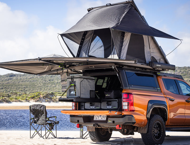 OverviewThe pinnacle of rooftop camping- quick, dark and comfortable! Black canvas A Comfortable sleep, no matter the season Sleep longer with blackout coated 320gsm Ripstop Polycotton, for temperature and light…